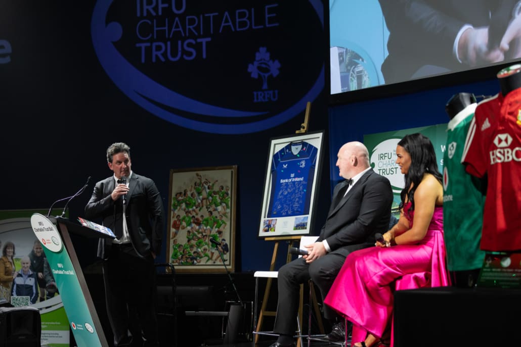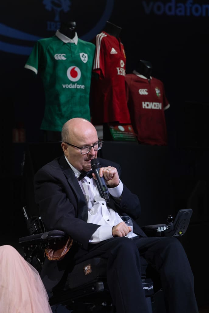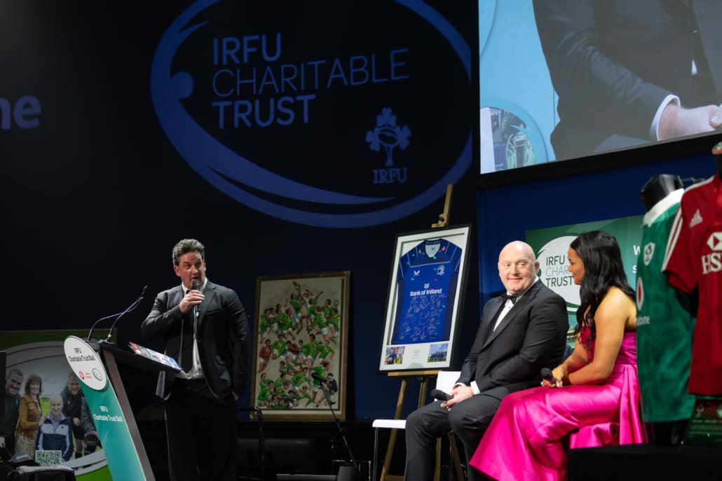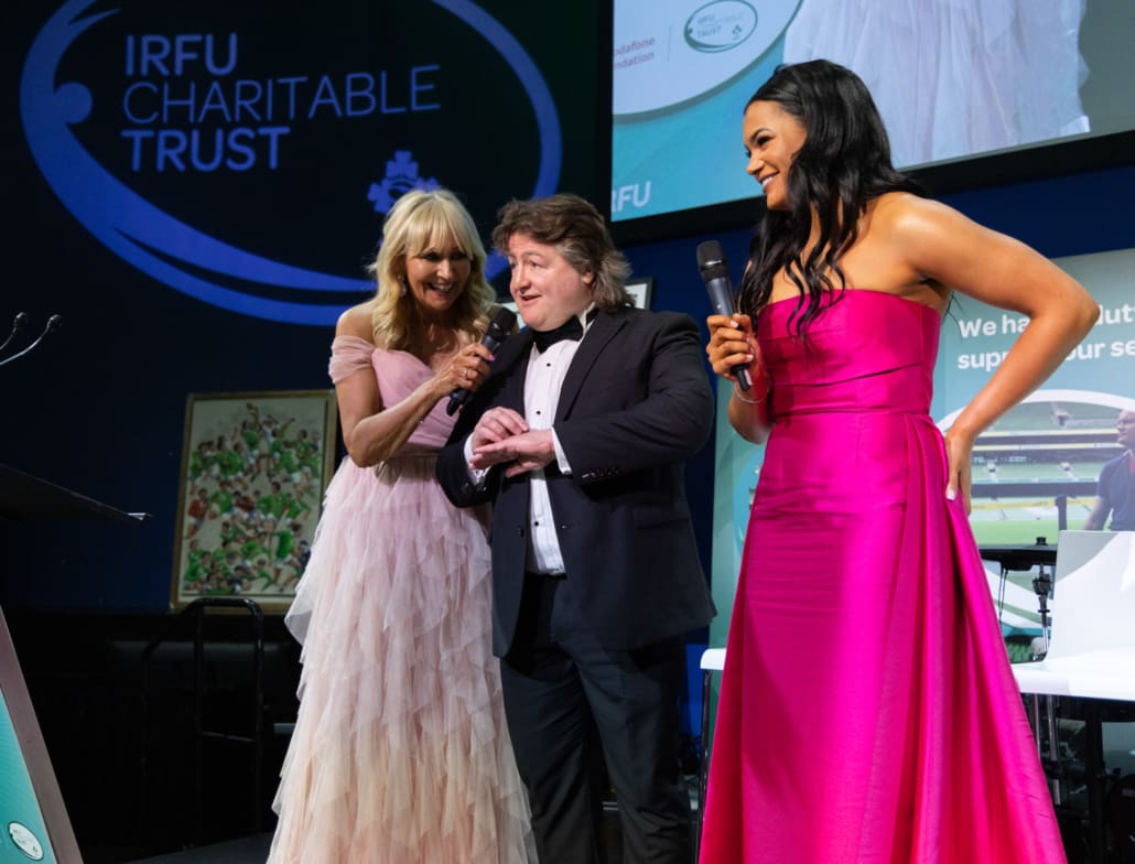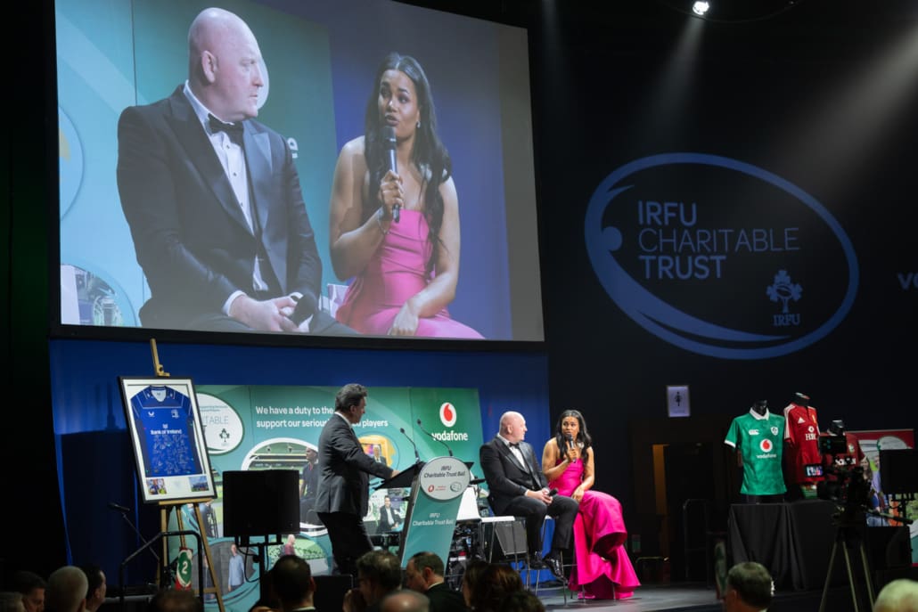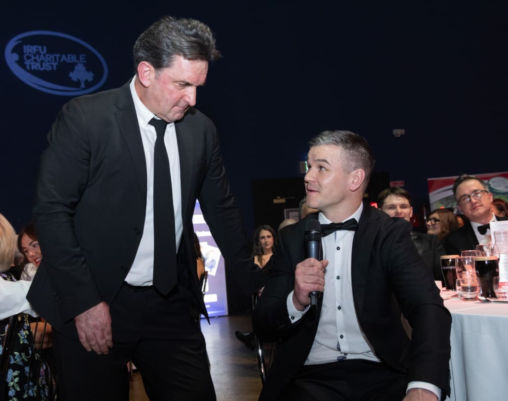 One of the most powerful moments of the night came when Brendan Glynn came to the stage to speak with Miriam. His words about family, resilience and the practical support provided by the Trust deeply resonated. In a spontaneous and heartening show of solidarity, several guests immediately offered their assistance in helping resolve a new travel challenge facing Brendan and his family. It was Irish rugby at its very best – action, not just applause.
