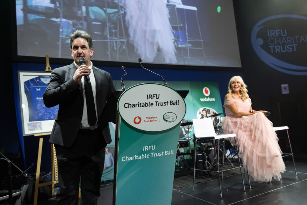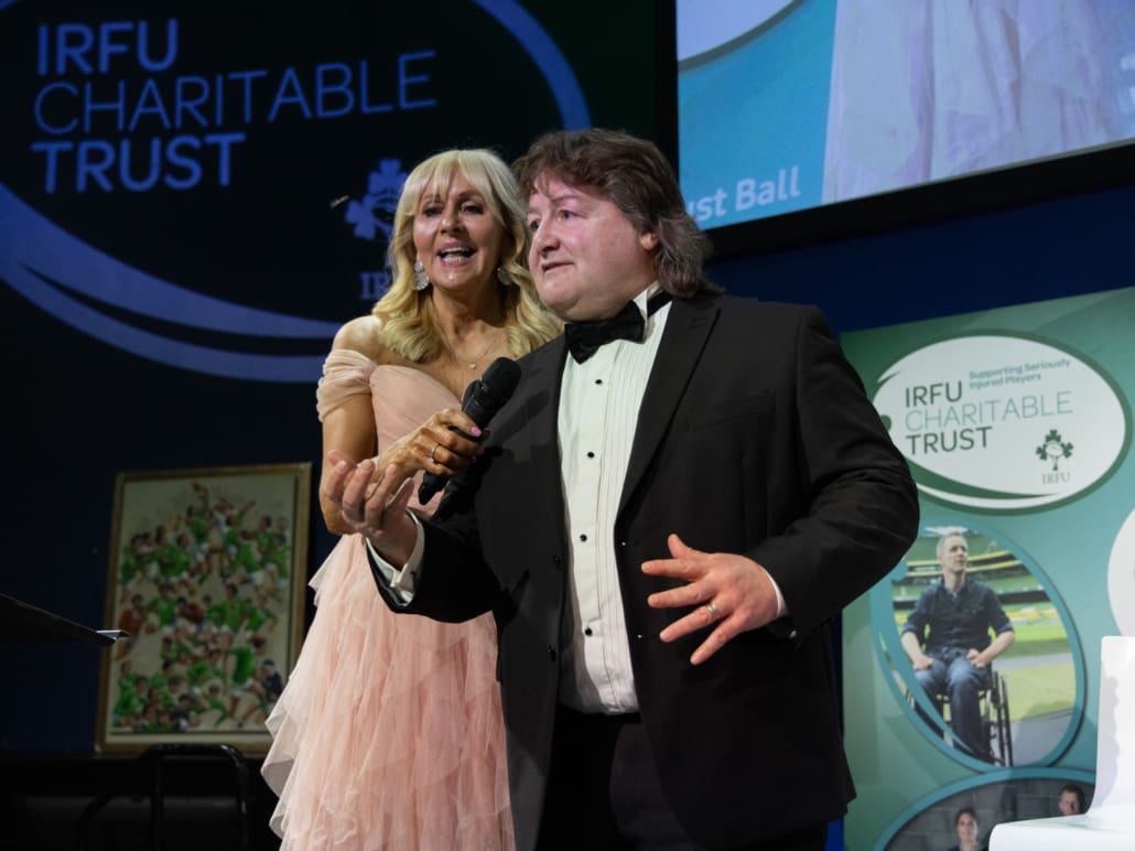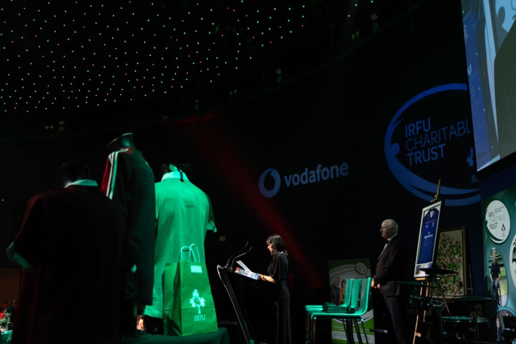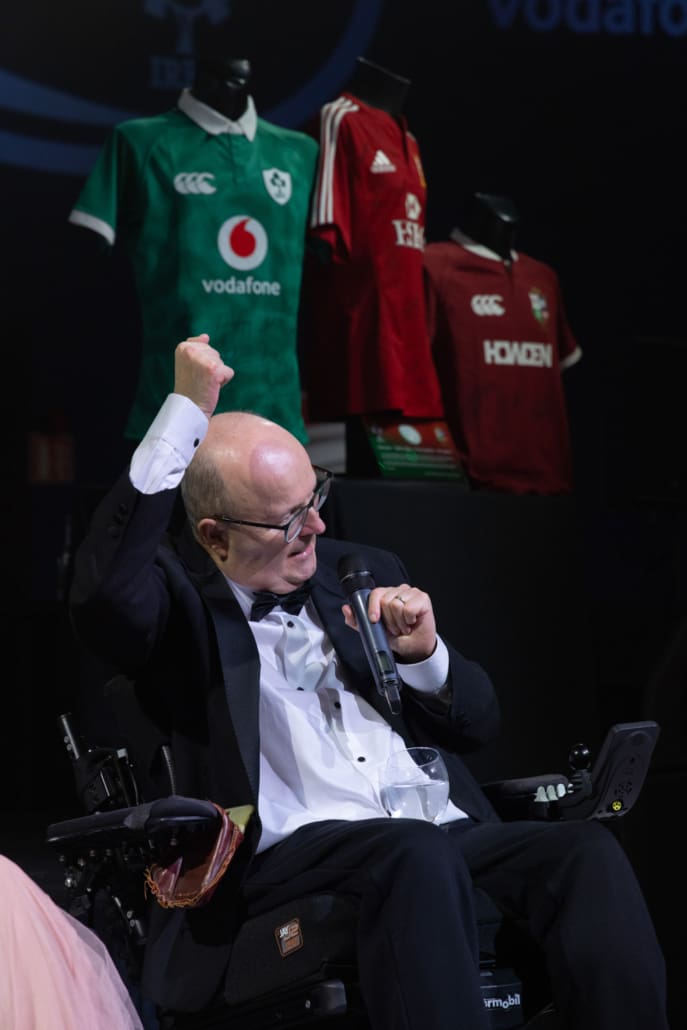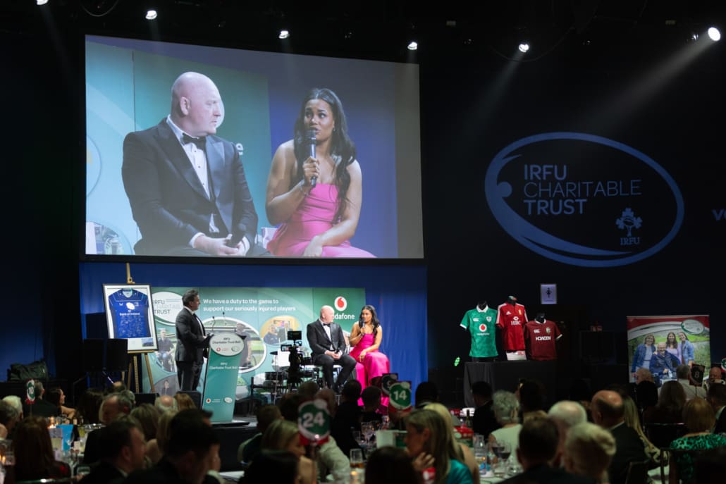 One of the most powerful moments of the night came when Brendan Glynn came to the stage to speak with Miriam. His words about family, resilience and the practical support provided by the Trust deeply resonated. In a spontaneous and heartening show of solidarity, several guests immediately offered their assistance in helping resolve a new travel challenge facing Brendan and his family. It was Irish rugby at its very best – action, not just applause.