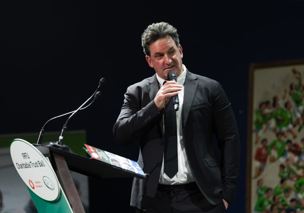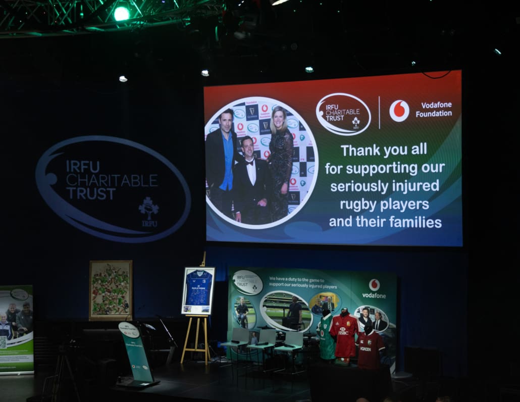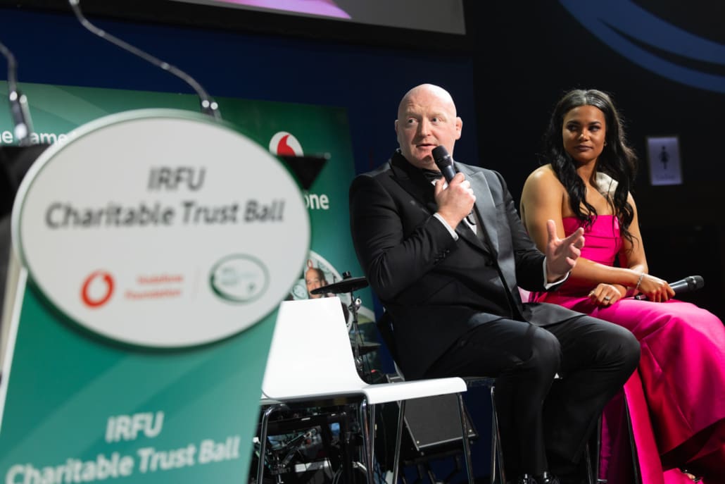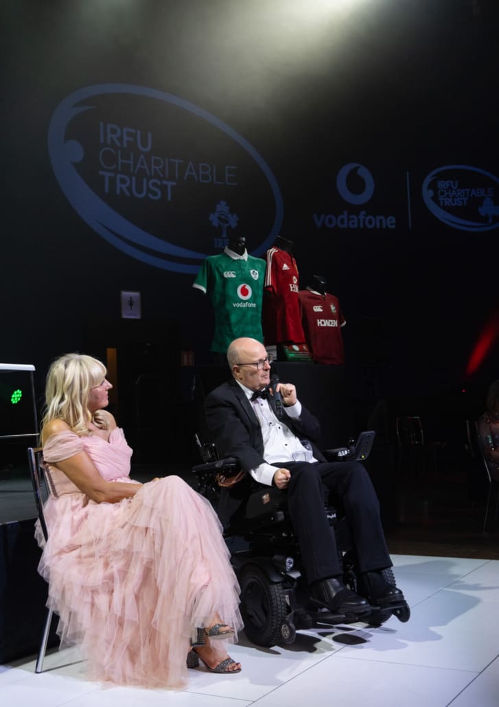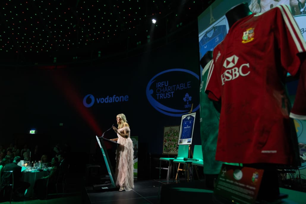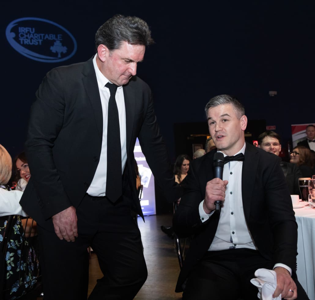 One of the most powerful moments of the night came when Brendan Glynn came to the stage to speak with Miriam. His words about family, resilience and the practical support provided by the Trust deeply resonated. In a spontaneous and heartening show of solidarity, several guests immediately offered their assistance in helping resolve a new travel challenge facing Brendan and his family. It was Irish rugby at its very best – action, not just applause.