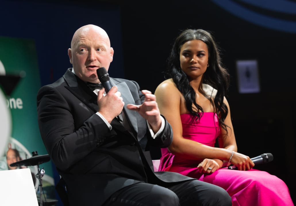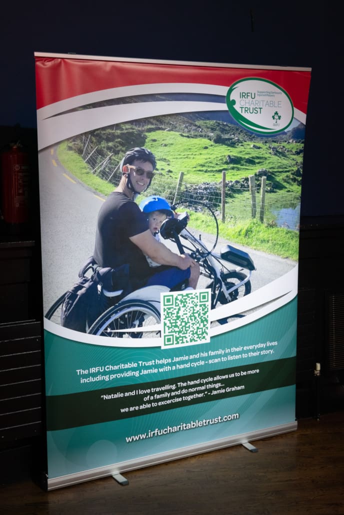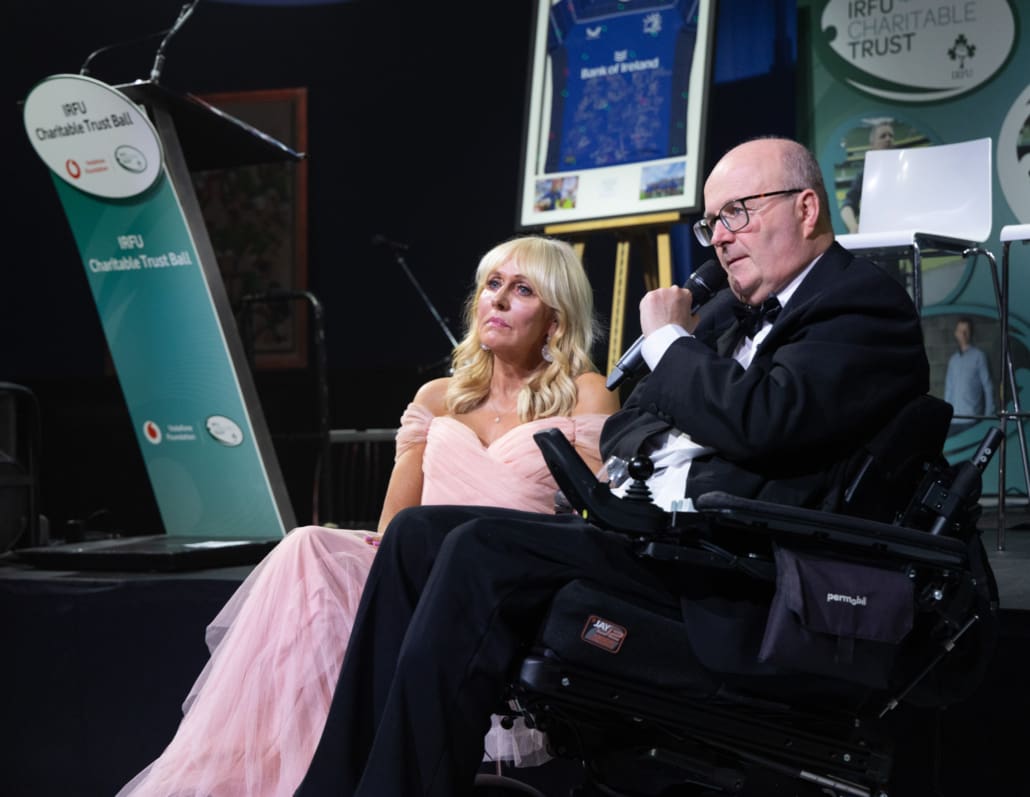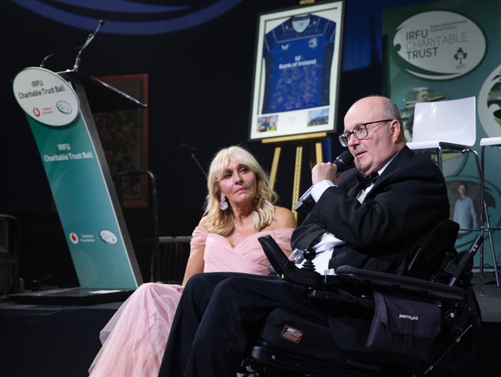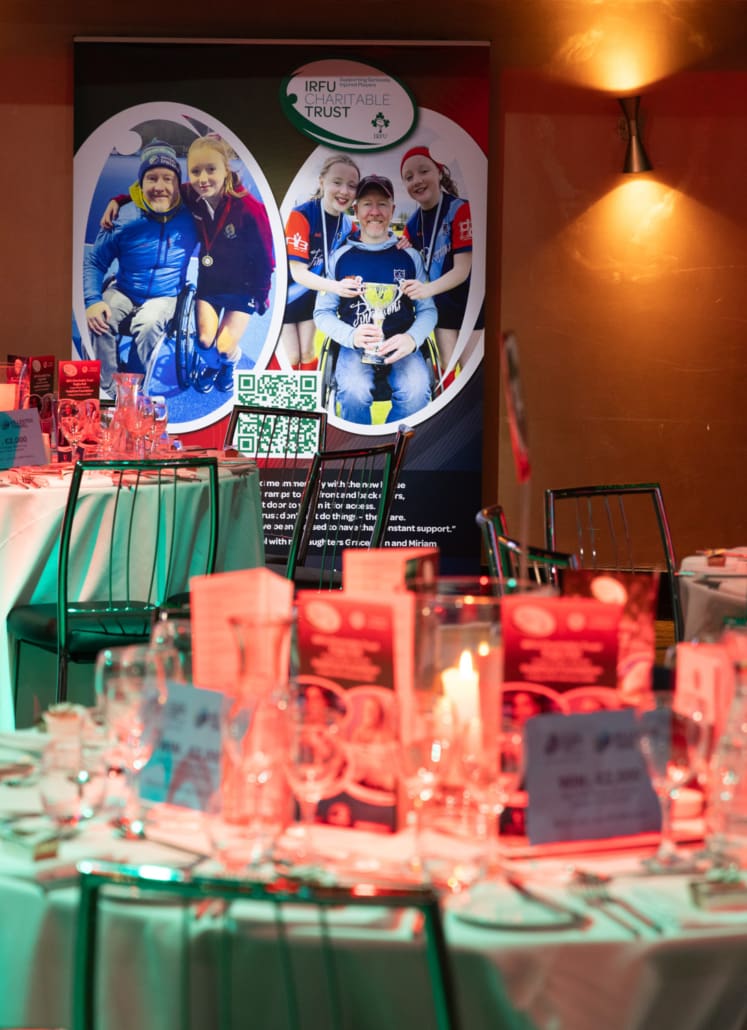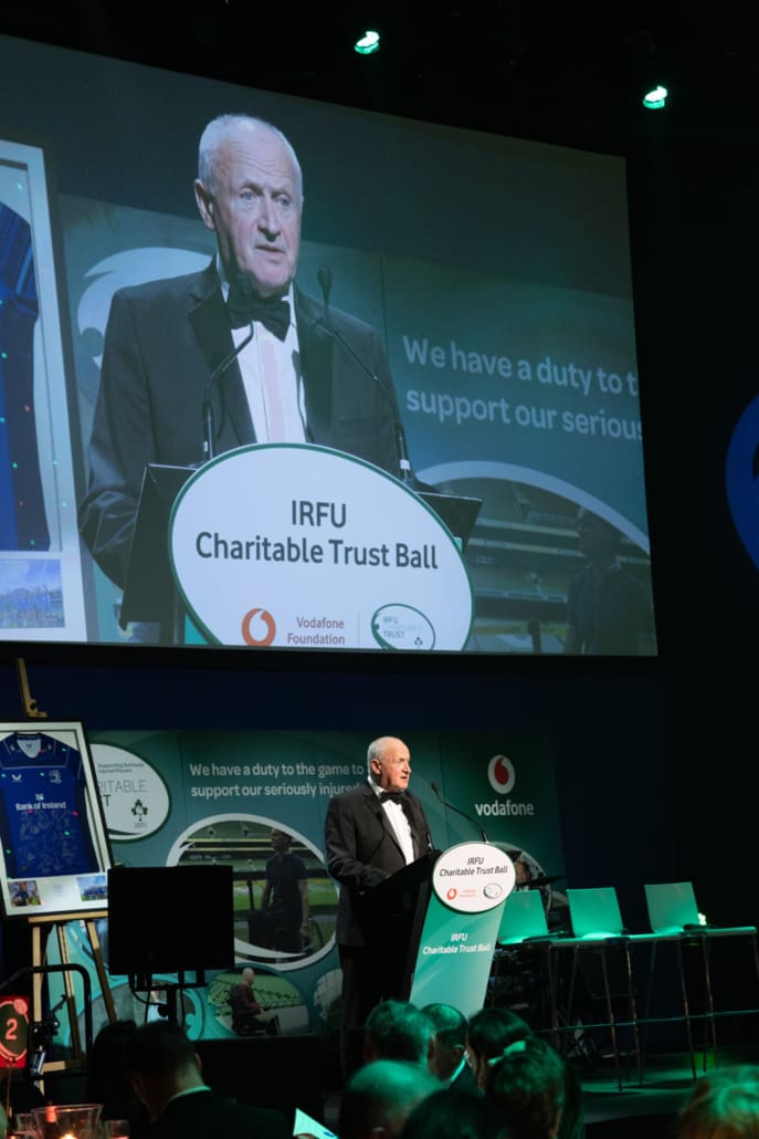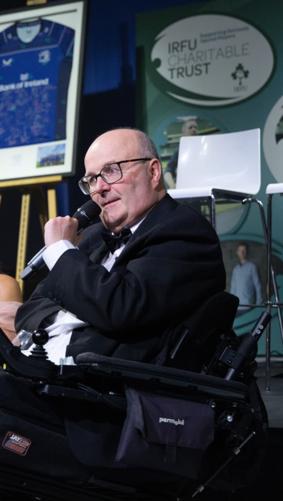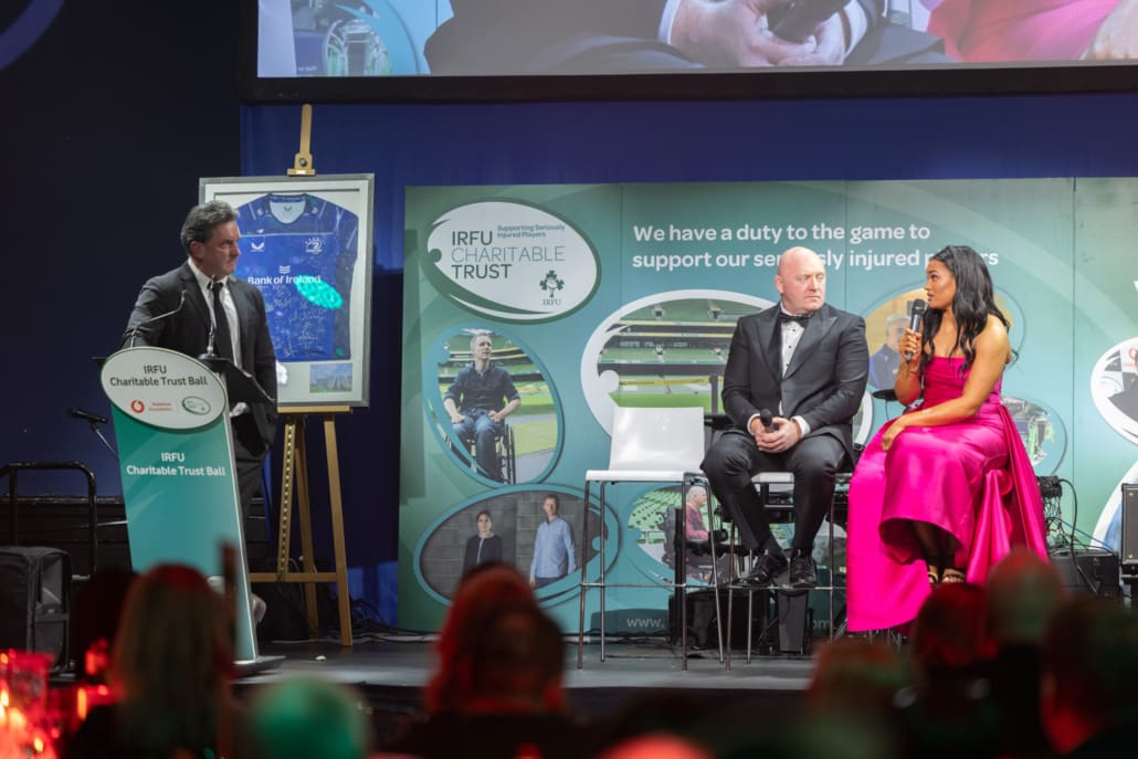 Guests listened in complete silence as Brendan shared his story in conversation with our exceptional MC, Miriam O’Callaghan. He spoke openly about his life-changing accident on the rugby pitch, about what the game means to him and his family, and about the unwavering support they have received from the rugby family and the Trust from the very beginning. There was not a person in the room untouched by his courage, honesty and gratitude.