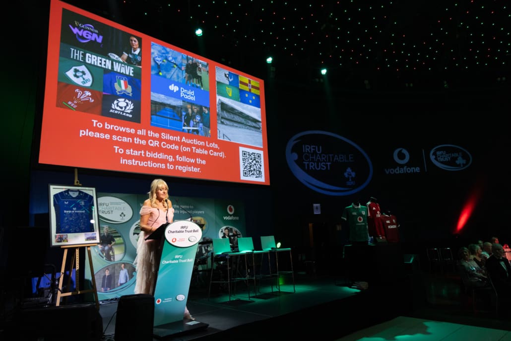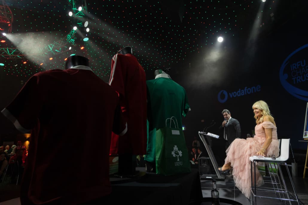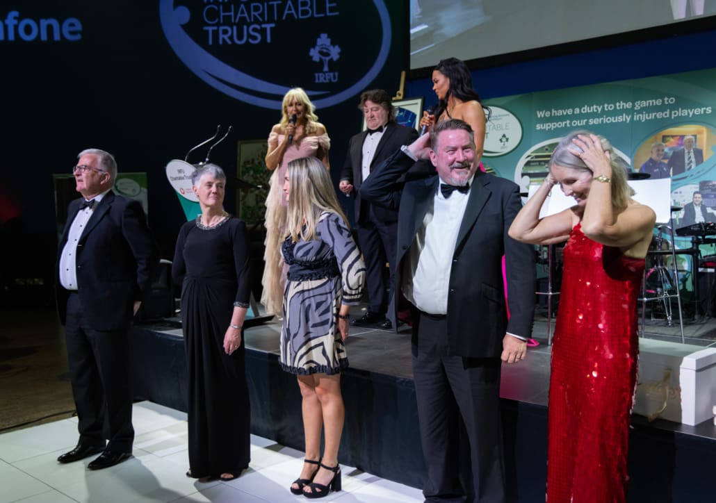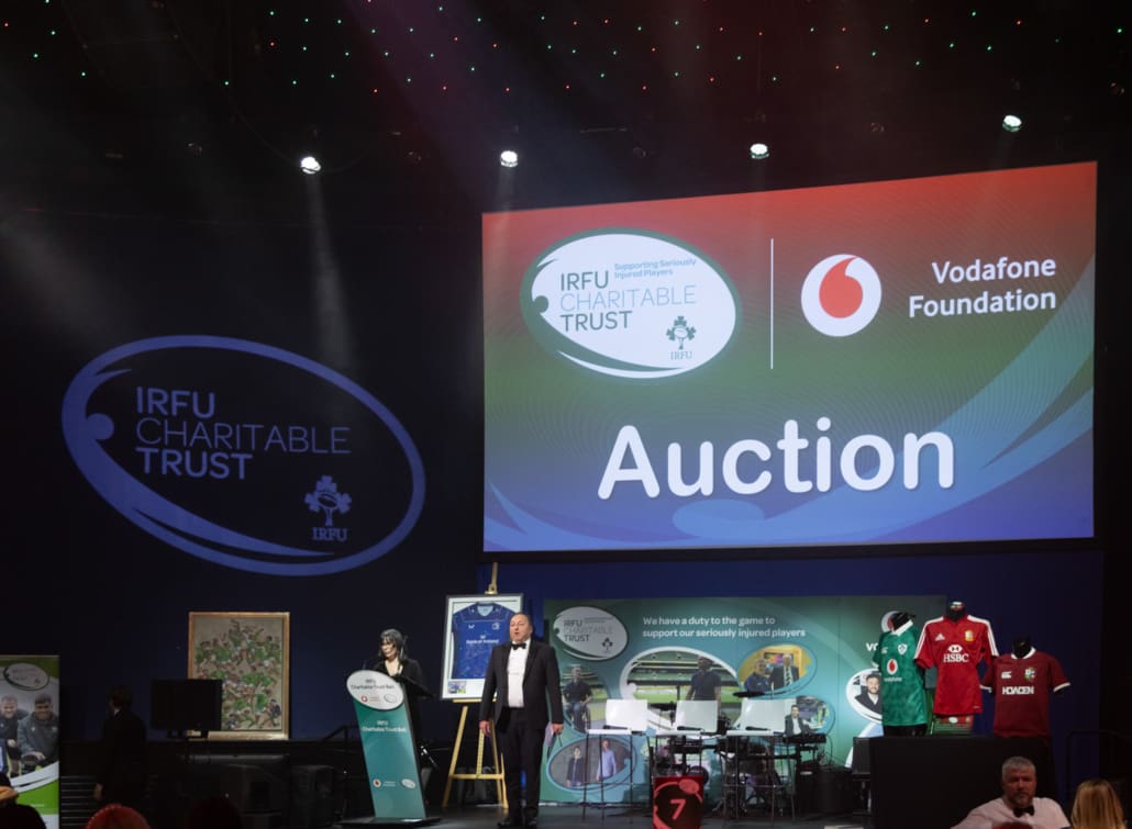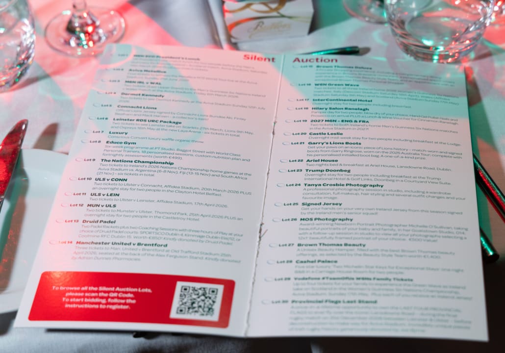 The Live Auction, expertly led by Keith Lowe, was a celebration of generosity. From unforgettable matchday experiences and signed jerseys to once-in-a-lifetime sporting and entertainment packages, guests gave wholeheartedly, knowing that every euro raised goes directly towards supporting the 36 seriously injured players and their families in the Trust’s care. The live auction lots can be seen within the Table Card on this page; in summary: