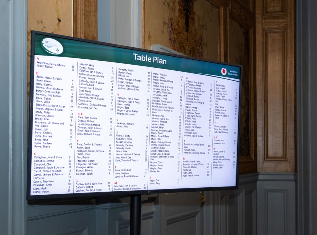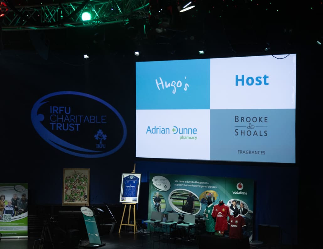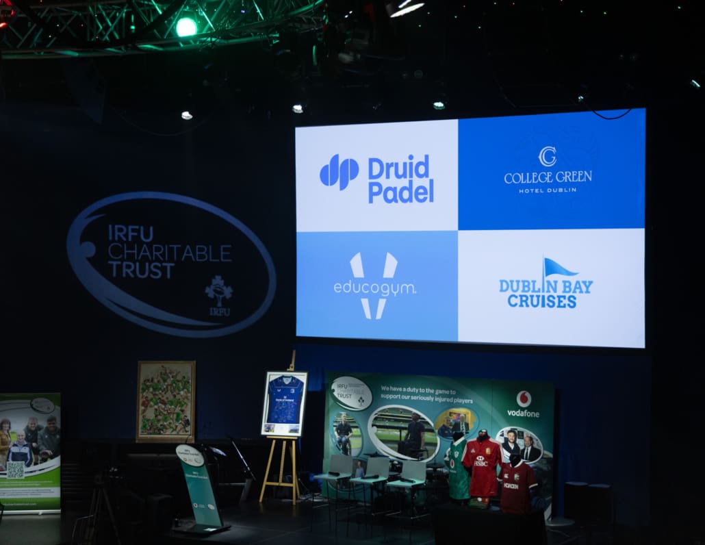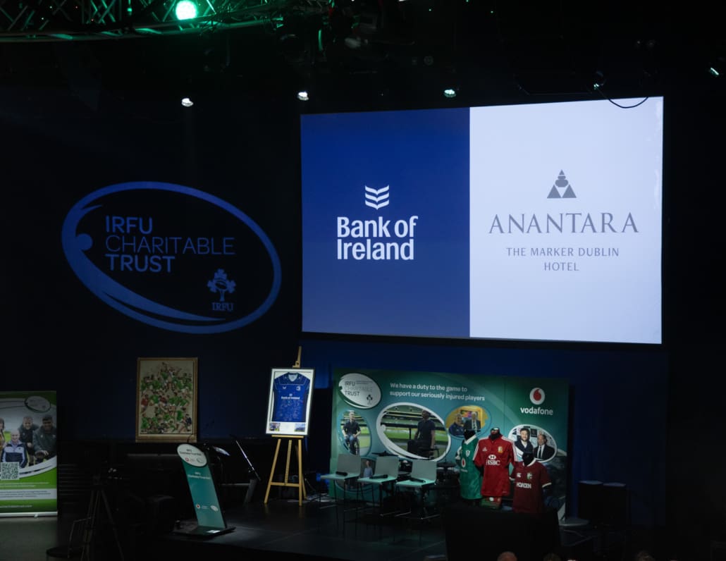 The Live Auction, expertly led by Keith Lowe, was a celebration of generosity. From unforgettable matchday experiences and signed jerseys to once-in-a-lifetime sporting and entertainment packages, guests gave wholeheartedly, knowing that every euro raised goes directly towards supporting the 36 seriously injured players and their families in the Trust’s care. The live auction lots can be seen within the Table Card on this page; in summary: