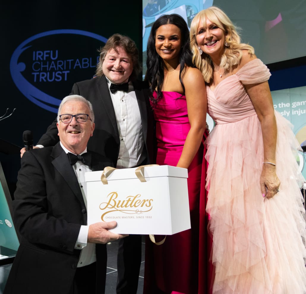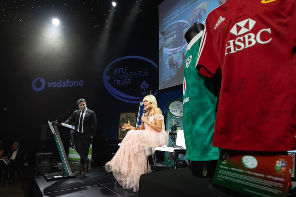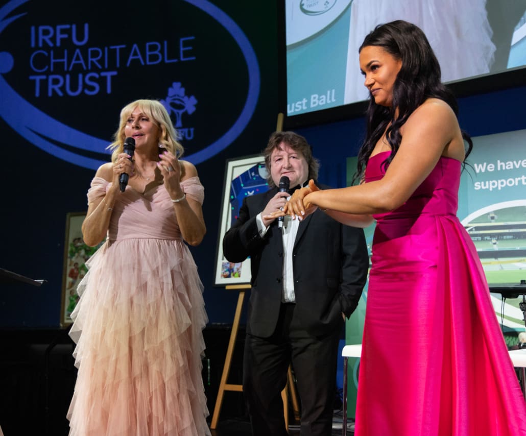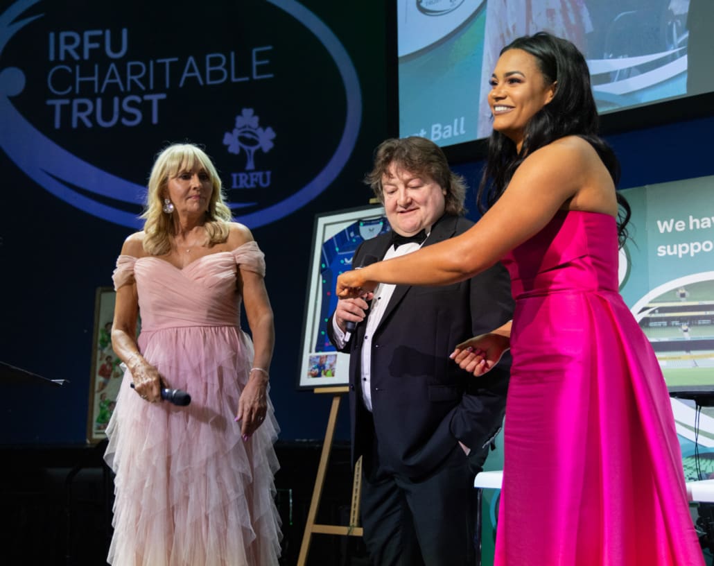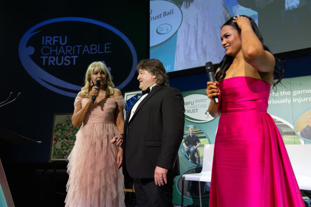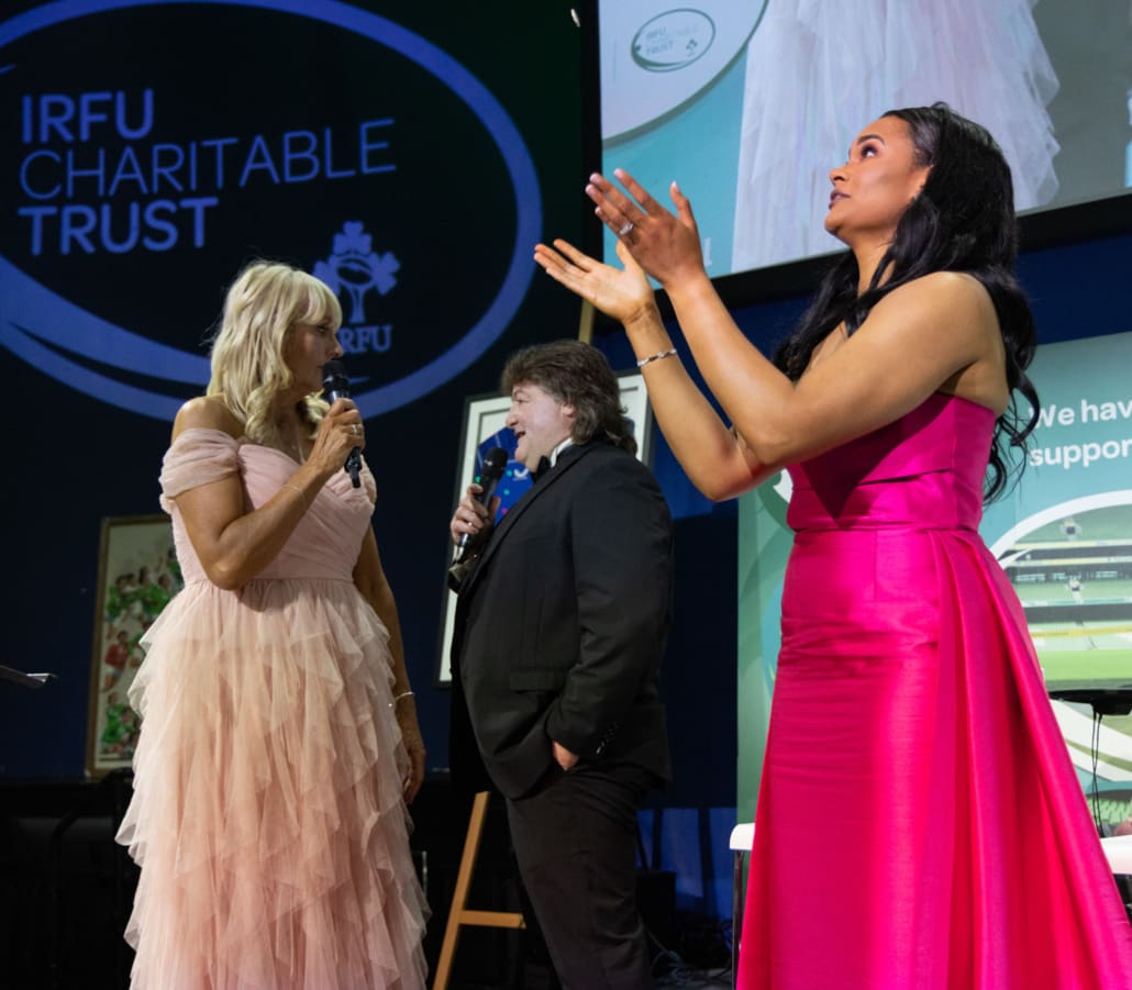 Miriam guided the evening with warmth and wit, joined on stage by the immensely impressive Eimear Corri-Fallon, who recently retired from international rugby to focus on her medical career while continuing to play with Blackrock RFC. They were joined by Leinster, Ireland and Lions legend Shane Byrne – fresh from an Ireland Legends victory over England which was part of a memorable weekend of Irish success – to run the always fun ‘Heads and Tails’ sponsored by Butlers. The Raffles and Silent Auction created huge excitement across the room, including a €2,000 Men’s 2027 Rugby World Cup travel voucher kindly donated by Killester Travel. With 30 outstanding Silent Auction lots and an incredible range of raffle prizes, the generosity of our guests was nothing short of inspiring.