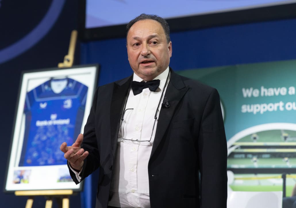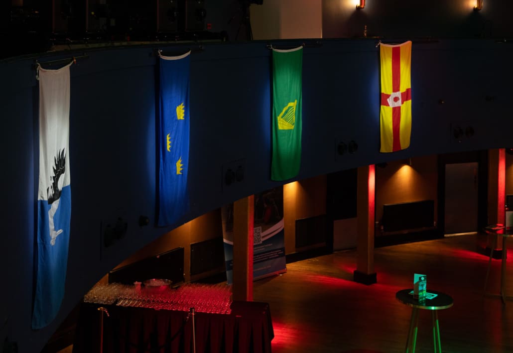 The room itself was steeped in history. Four precious pieces of Irish rugby heritage – the final four flags ever to fly over the old Lansdowne Road before it made way for the Aviva Stadium – hung proudly from the balcony, generously donated by Joe Byrne, President of Cill Dara RFC. They stood as powerful symbols of legacy, pride and continuity within Irish rugby.